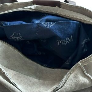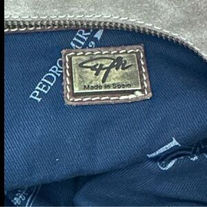 The detail and design of this Pedro Miralles bag brings out its elegance. This beautiful suede handbag/tote with intricate leather detailing and hand sewn stitching adds to its beauty. Offering a top zip closure, generous inner zip compartment and two inner pouches. A stunning classic bag that is so well made. Gently PreOwned.