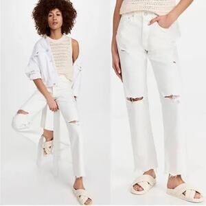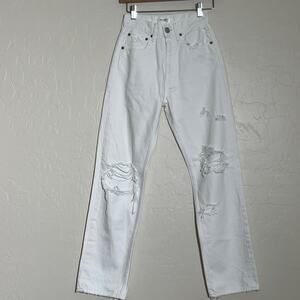 Moussy Vintage High Rise Straight Leg Distressed Jeans Cream Womens Size 24