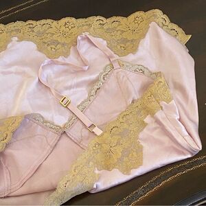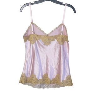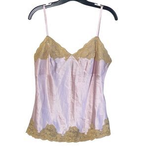 Vintage Y2K Express Pink Silk Gold Lace Trim Camisole Sz M in EUC with no visible flaws