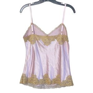 Vintage Y2K Express Pink Silk Gold Lace Trim Camisole Sz M