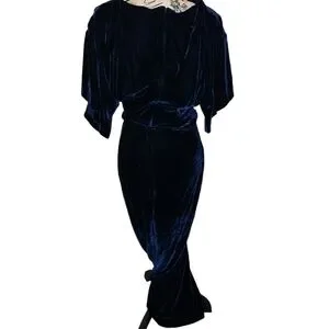 MODCLOTH X COLLECTIF NAVY BLUE VELVET LONG DRESS SIZE UK 10 USA S