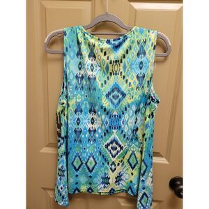 NWT New Directions Pant Suit, Large in Blue/Green Tribal Print