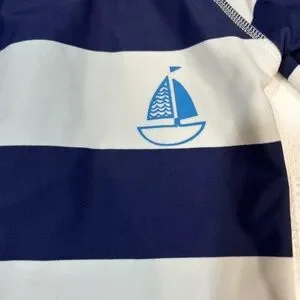 Baby swimsuit 12-18 Months Blue Stripe Zip Back One Piece Swimsuit Rash Guard