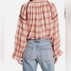 Cotton top with a tassel-trimmed tie and eyelet details.