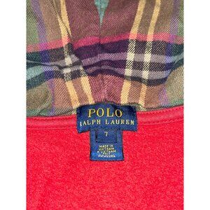 Polo Ralph Lauren Kids Red Full-Zip Hoodie Jacket Size 7 Plaid Hood Lining Cotto
