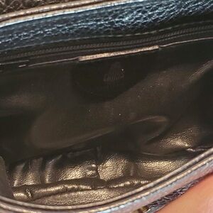Mark Cross black pebble leather cross body or belt bag with gold hardware. The bag has a removable strap so it can be worn on a belt. Magnetic snap closure and interior zipper pocket. Measures approximately 6”W x 5”H x 1.5”D with a 24” strap drop. Excellent vintage condition.