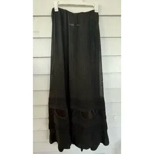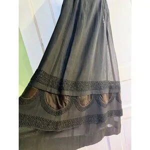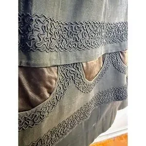 Antique 1910's French Voile Black Skirt Soutache Velvet Embellished XS