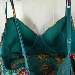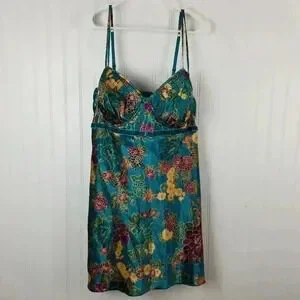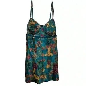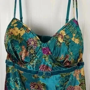 Cacique Womens Babydoll Floral Satin Slip Top Velvet Sz 26/28 Fairy Whimsigoth