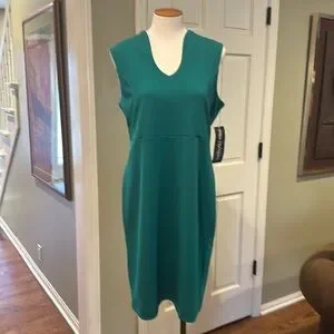 NWT Nina Leonard Sz Large Kelly Green Crepe (?) Sheath Shift Dress