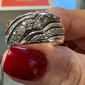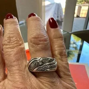Brand new never worn John Hardy silver Lamar 10MM band ring with diamonds. Bought from John Hardy but bought wrong size and was final sale. Purchased on sale! Comes with box, etc. Size 7; beautiful ring!