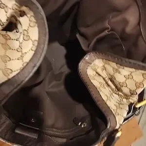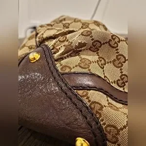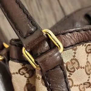 This is a beautiful pre-loved purse! Classic brown Gucci canvas with brown leather trim and straps, with gold metal hardware.
