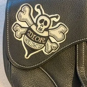 CHRISTIAN DIOR X SHAWN STUSSY Grained Calfskin Bee Saddle Bag Black