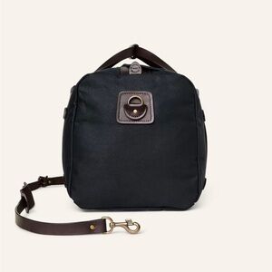 This is a Filson, size Medium, Navy duffle bag. The bag is made from industrial-strength lightly waxed fabric and features: