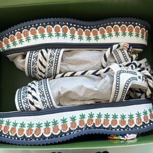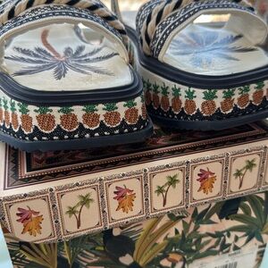 Farm Rio Pineapple Embroidered Platform Sandal Size 10