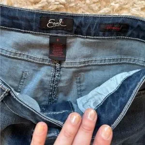 Earl brand jeans Women’s size 8 . Skinny fit but also stretchy. Comfortable and flattering. I’m 5’8” and these could fit up to 2 inches taller than me! Comes from a smoke free home.