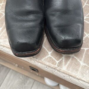 All leather with Minor scuffs at toes, see pics, otherwise in barely worn condition , very good condition. These will Last a lifetime! Rubber textured soles for non slip and silver metal rings on the sides