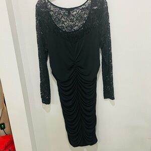 Torrid Womens Plus Size 2X Lace & Ripples Body Con Black Long Sleeve Goth Dress