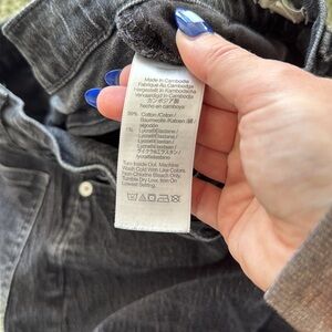 Slightly faded black wash, some stretch as it’s 1% elastane. High waisted straight leg.