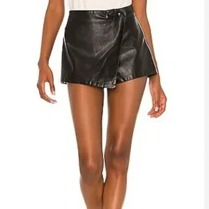 Free People Emmy skort in black leather. Worn once. Size 4. Wrap front.