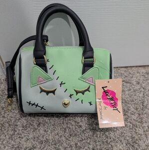 NWT Luv Betsey by Betsey Johnson Frankenstein Kitty Crossbody Bag Mini Barrel
