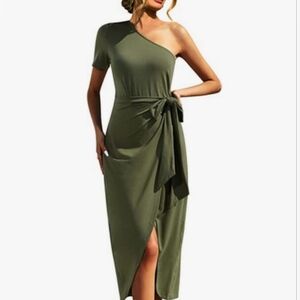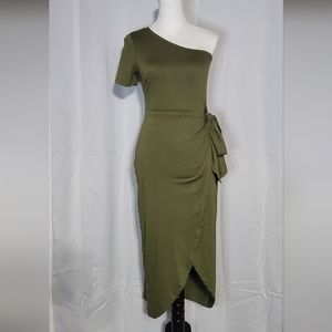 EXLURA Women's Green NWT One Shoulder Bodycon Midi Dress Size Small 🐈