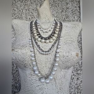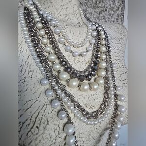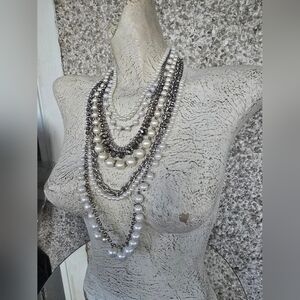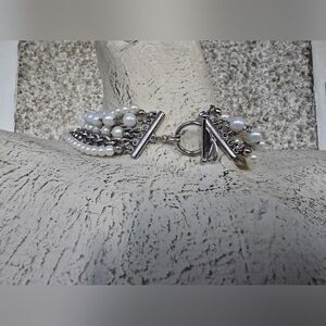 Anne Taylor multi strand metal faux pearl toggle clasp necklace