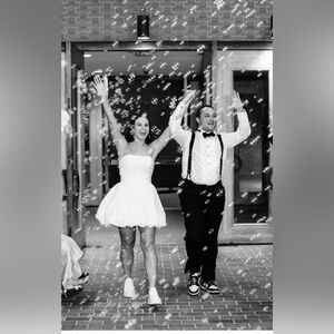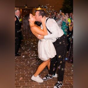 Size 8; Worn 1x for wedding reception, fun bridal look!
