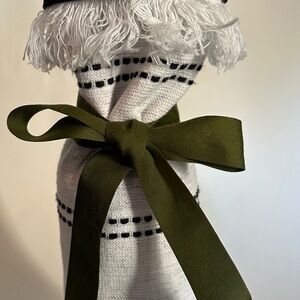 Hand crafted, lined gift bag for 750 ml wine or bottle beverage of your choice. Sewist says it’s a “second” due to the seams not lining up on the underneath of the bag. Ribbon is not attached so changing of color is possible. Crafted using an unused dish towel and unused fabric. Perfectly for taking a bottle of wine to a kitchen party or any hostess gift. Bottle not included-bottle empty anyway