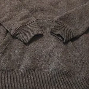 Really nice charcoal grey in color with nice ribbing details on the sleeves and hem. Pretty classy for a hoodie.