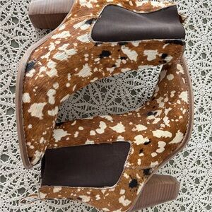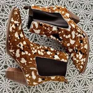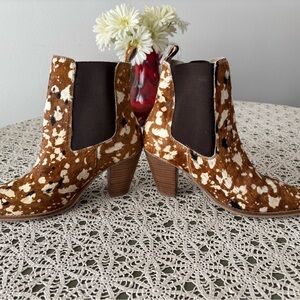Diba True faux hair 9.5 women’s ankle boot bootie. Browns. Chelsey. Preloved. Insoles are in great condition. Normal light wear on these pretty boots booties. Heel is about 3” and boot itself from ground measures about 8.5” tall.