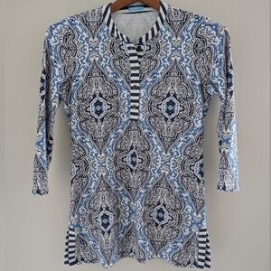 Stunning J. McLaughlin 3/4 Sleeve Biscayne Band Collar Tunic Top.
