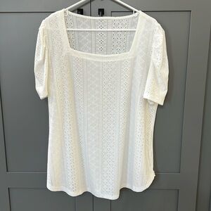 Woman’s Sz XL Sheer White Eyelet Top w/Square neckline