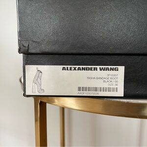 Iconic vintage Alexander Wang Tasha Bandage Boots. Black leather stitched overlay mid calf boots with super high heel and covered platform. Excellent used condition with light wear to soles and heels from light use, only worn a few times. Size 36/US 6. Ships with original box and dust bag. These boots are EVERYTHING!!!