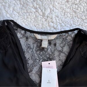 NWT Banana Republic Black Lace Cap Sleeve Blouse Petite