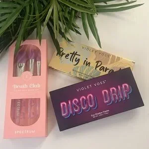 Details: 1- pretty in paradise palette , 1 disco drip palette and one 3 piece brush set