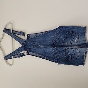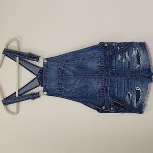 American Eagle Outfitters Tomgirl Shortall Distressed Bib Overalls Shorts Size M