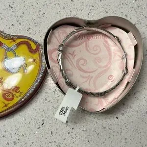 Brand new silver bangle bracelet with tags still in the tin. Never worn! Includes cloth bag.