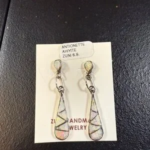 Elegant Zuni S.S. earrings featuring shimmering opal stones. Perfect for adding a touch of sparkle to any outfit.