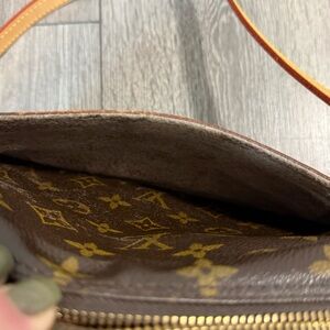 ✨Please take a look at ALL photos as bag is in gently pre-loved, used condition. Baby powder has been applied to back pocket and inside zipper pocket, due to stickiness from the interiors aging. Front pocket with strap has not been powdered (still sticky). All flaws are shown on photos. NO RIPS or HOLES. Shoulder strap has been replaced at a Louis Vuitton store (small water stains shown by buckle)✨ 100% authentic and vintage, verified by Louis Vuitton✅