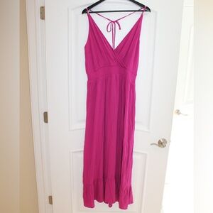 White House Black Market swim coverup, ruffle hem maxi, smocked waist, orchid flower color, size women’s L (large), NWT (new with tags), never worn or used.