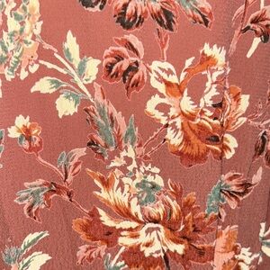 Peach pastel pink salmon, olive green, ivory, burnt orange, and burgundy floral rose print