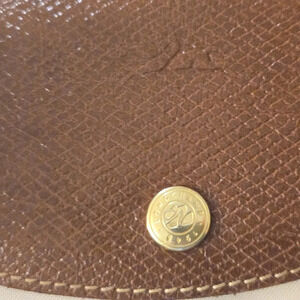 The bag has been handwashed, it is used, and some marks remain on the bag. see photos. Lots of life is left in this beautiful purse. Handles in excellent condition. Inside in good condition.
