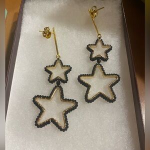 Lavish by tricia milaneze great earrings. Open Stars. Black and gold color.