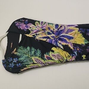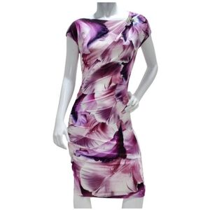 Roberto Cavalli Purple Floral Print Gathered Sheath Dress Size Medium