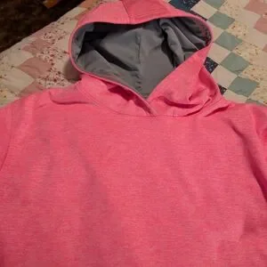 Cozy pink hooded sweatshirt. Soft fabric with a comfortable fit. Perfect for casual wear. In excellent condition. No marks. May have been worn only once.