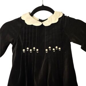 Charming black velvet dress from Laura Ashley features a white scalloped collar. Delicate floral embroidery on the front. Size 4T. Button closure. Perfect for special occasions. Excellent condition! Your satisfaction is very important to me, please let me know if you have any questions before purchasing. Thank you for visiting my listing and Happy Shopping!