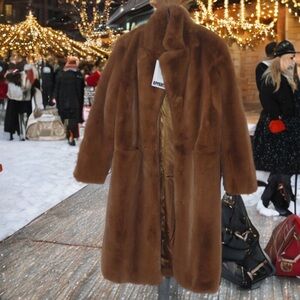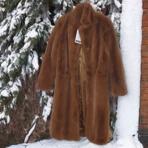 Model measurements: 5'10" height, 33.5" bust, 23.5" waist, 34.5" hips, wearing a size small Oversize notch spread lapels, long sleeves Concealed front-snap closure, two side