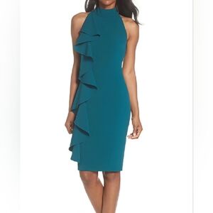 Eliza J, NWT, Ruffle Sheath Dress, in Peacock, Knee Length, Size 18