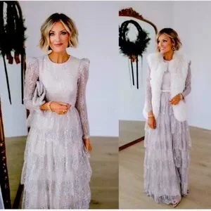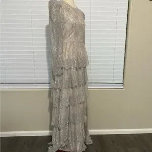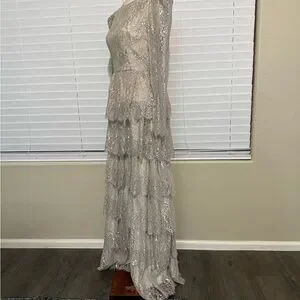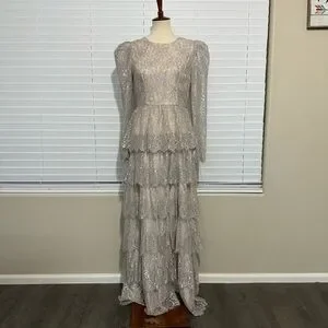 Antonio Melani x Born on Fifth “Clara” Metallic Lace Tiered Ruffle Maxi Dress – Size 6 – New with Tags