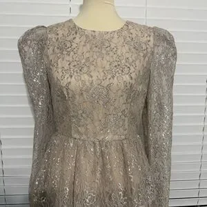 • Stunning metallic lace design with intricate details